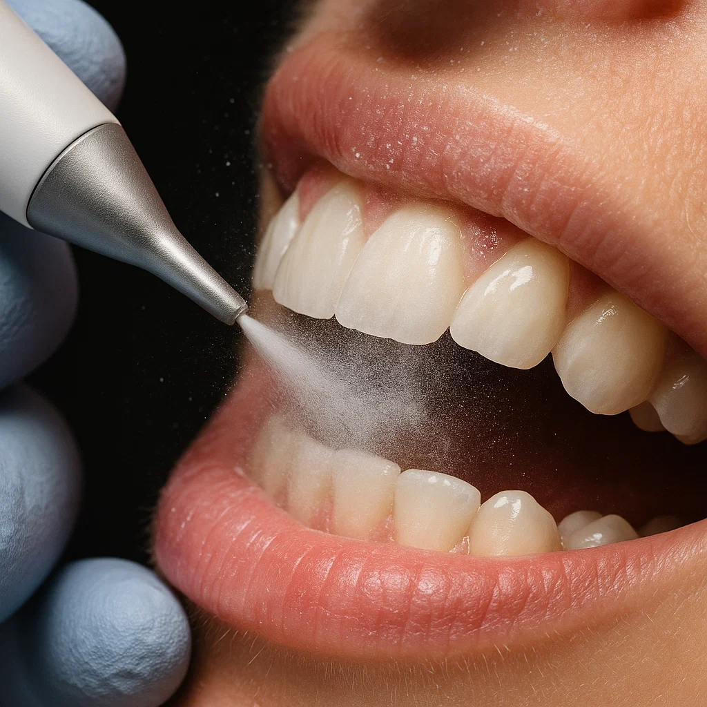 Airflow-polering innebærer bruk av en luftstråle med vann som sentreres til spesifikke områder på tennene dine. Behandlingen fjerner plakk, flekker, misfarging og andre avfallsstoffer fra tennene. Airflow-polering er perfekt for deg som har implantater eller finér, ettersom behandlingen ikke medfører trykk mot noen av tennene. Dette gjør at slike komponenter ikke skades under behandlingen.